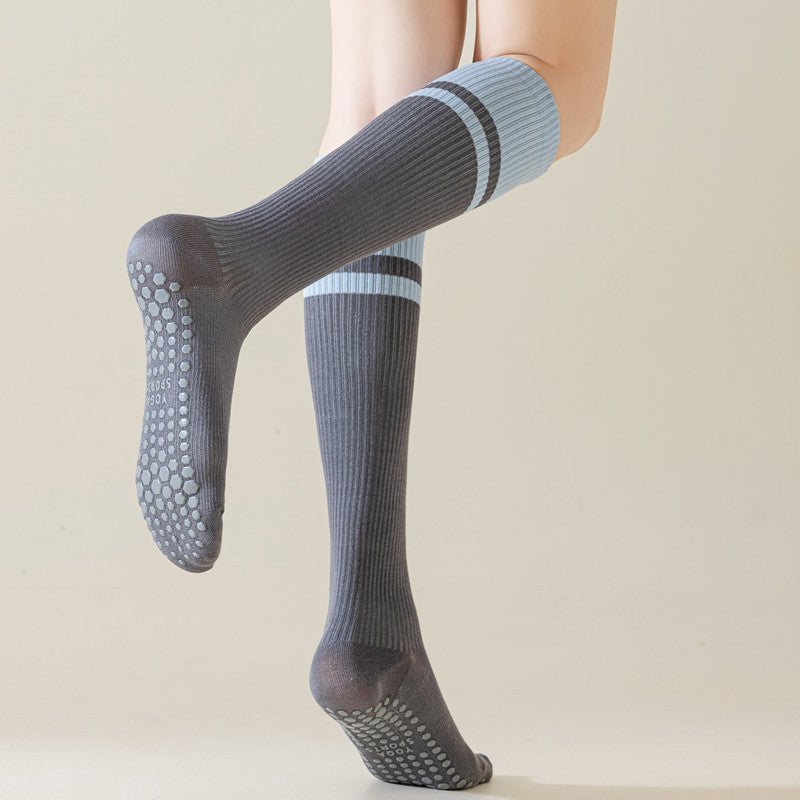 Stay secure and stylish with our High-Rise Pilates Grip Socks, a high-rise ribbed cuff for added comfort and support. Perfect for Pilates, yoga, and barre, they provide superior grip helping you move with confidence.